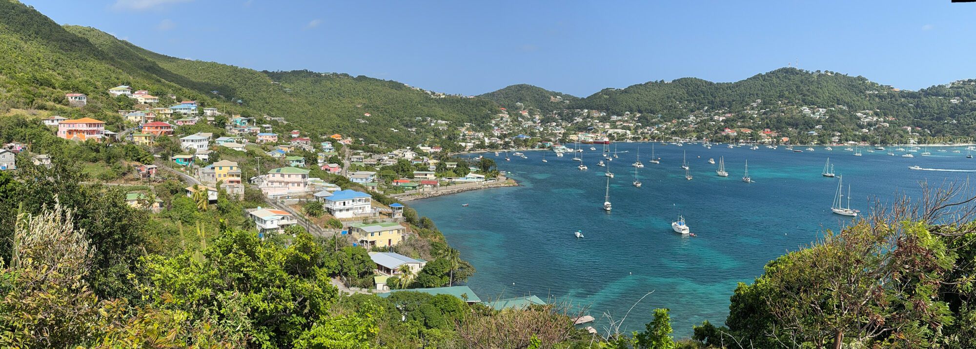 Shortly before lunch we passed the Diamond Rock that occupies a strategic position at the north end of the St. Lucia Straits. Possession of the Rock controls the navigation between Martinique and St Lucia: Because of that Diamond Rock played a big role in the British-French war in the early years of the nineteen century. Our historian Tom Heffernan explained to us why the HMS Diamond Rock is the only rock in the world being saluted today by British navy ships passing by.