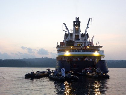 The infamous Tom Ritchie, the human, not the boat, peaked people’s interests in the afternoon with a talk about the wild and primitive predators within the Komodo National Park that await us with forked, flickering tongues! Later we joined our National Geographic photographer, Jeff Mauritzen, in the lounge for his interesting photography presentation, “On Assignment with National Geographic” regaling his professional tips and experiences. Jeff also took the extra time to assist with guests’ personal questions concerning photography and their cameras.