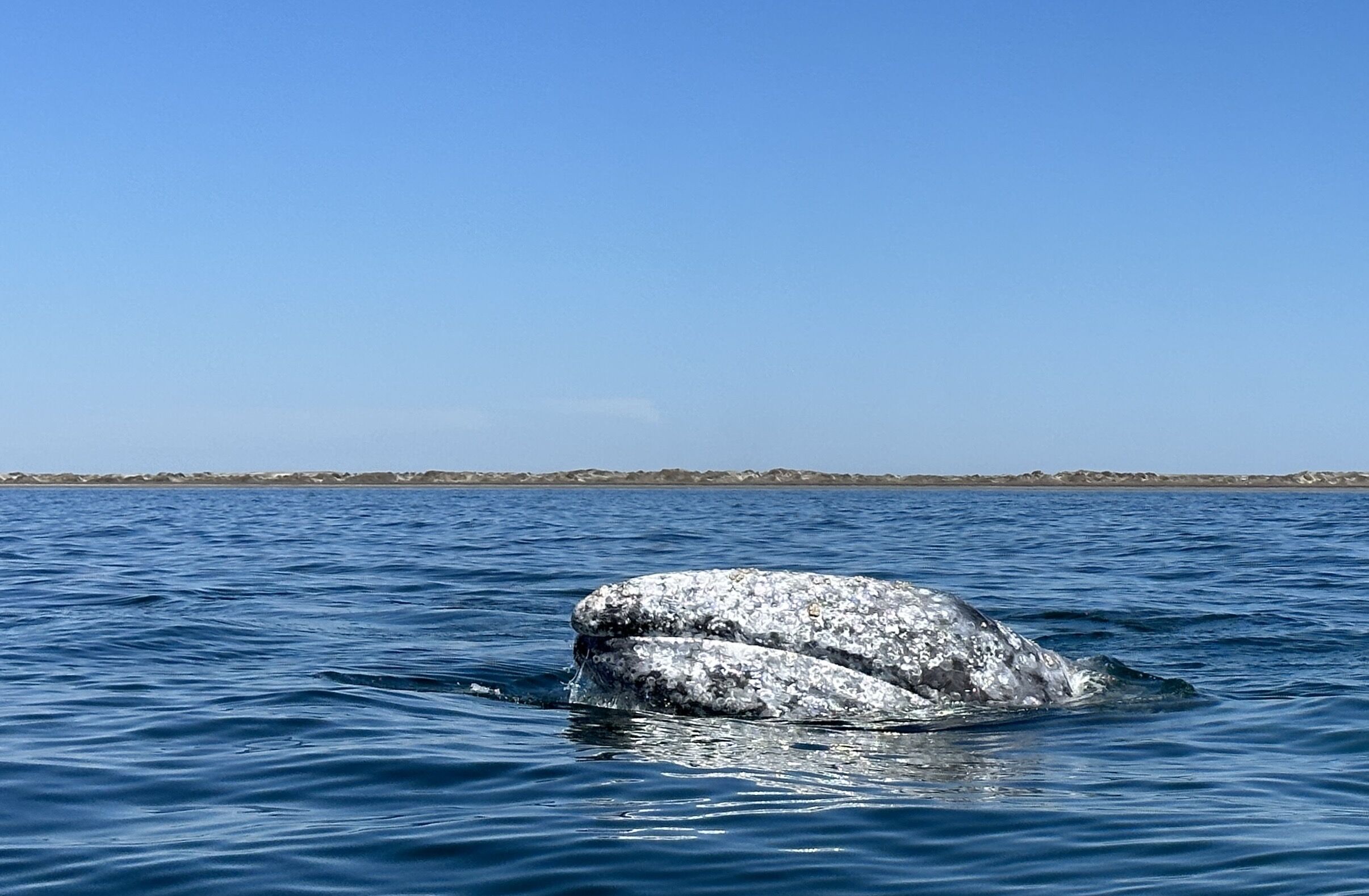 After breakfast we were shuttled ashore for an exhilarating walk on the sand dunes of Isla Magdalena. We trekked across the powdery sand, passing specialized plants and piles of shells discarded long ago by human visitors. The beach on the Pacific side, scattered with sand dollars, stretched for miles.