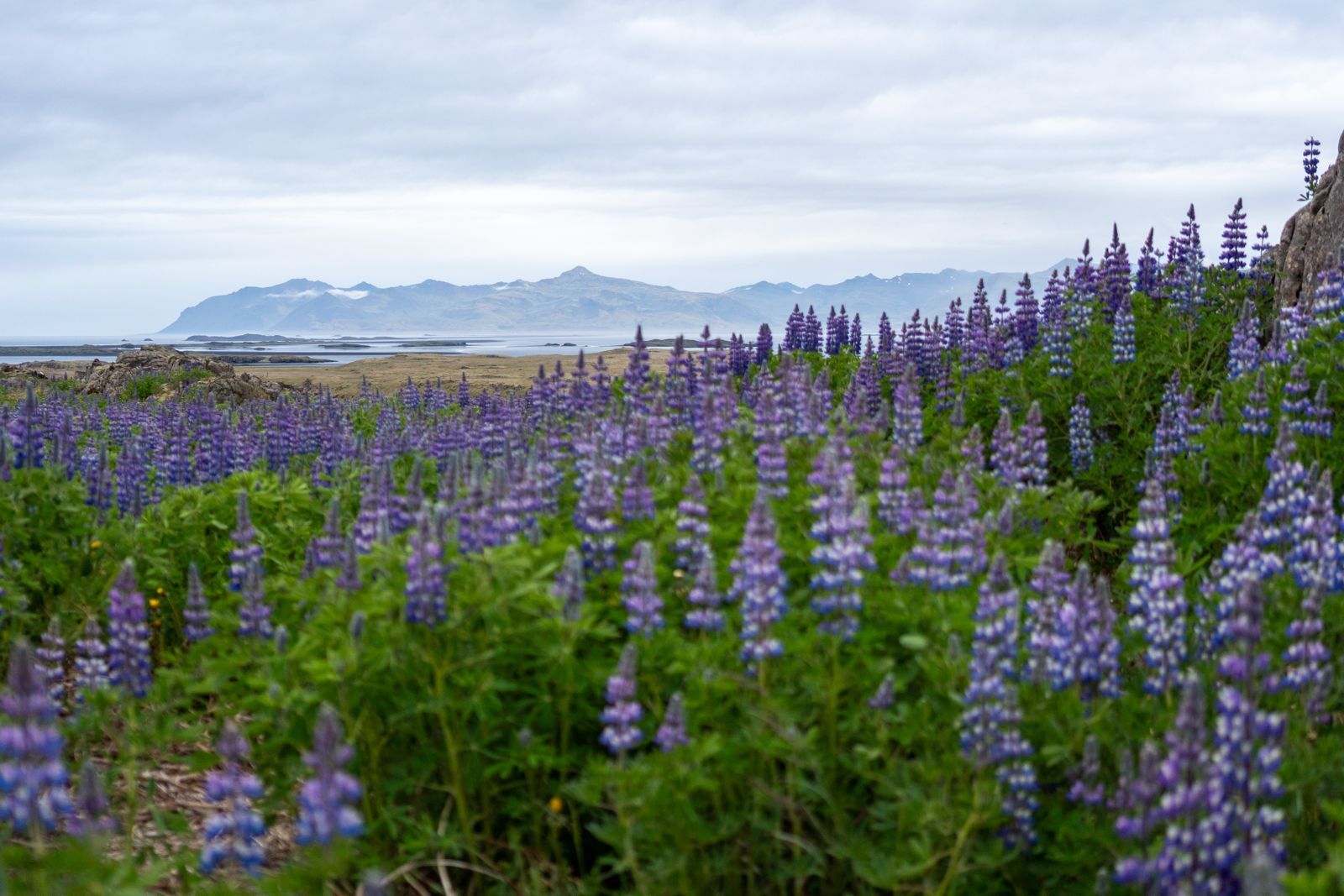 National Geographic Explorer sailed into Borgarfjörður Eystri early in the morning, and fog was still covering the whole landscape. Fog is a specialty of the East Fjords of Iceland and can sometimes settle for days. But we were fortunate, and it lifted as the morning passed. We had a lot of activities planned, including hiking, mountain biking, and nature walks. We wandered the trails covered in Nootka lupine and wild native flowers. We observed many birds, like the golden plover, the whimbrel, and the black-tailed godwit. These birds landed on the trail repeatedly for us. As the morning went on, temperatures rose, and it became sunnier and sunnier!