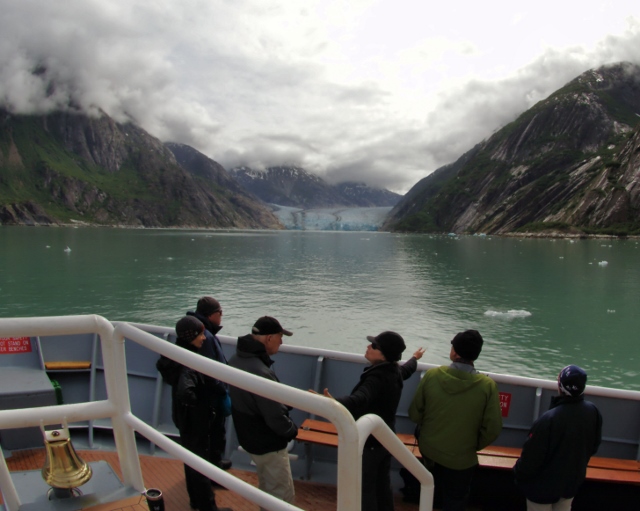After our sojourn through the pack ice up to 82 degrees 15 minutes north latitude last night, we had a long way to go back towards the coast of the island of Spitsbergen. By morning we had left the vast white plain of Arctic pack ice behind and soon saw the snow-covered mountains of Svalbard. We were treated to several presentations by expedition staff, and as the morning progressed, the coasts of Nordaustlandet and Spitsbergen rose up ahead. By midday we were in the sheltered waters of Wijdefjorden. Following a major geologic fault line, this wide fjord nearly splits Spitsbergen in two, with 400-million-year-old mountains on either side. We stopped in front of Nordbreen, the North Glacier, draining the Asgard ice field. Careful scouting by the expedition team found no evidence of polar bears, which meant we were clear for hikes along the beach, moraine, and ridge above the glacier. There were reindeer grazing on the foreshore and ten walruses hauled out on the point. Everyone could choose a hike suited to their desired level of effort, and all had great views of wildlife, the glacier, and its surrounding mountains.