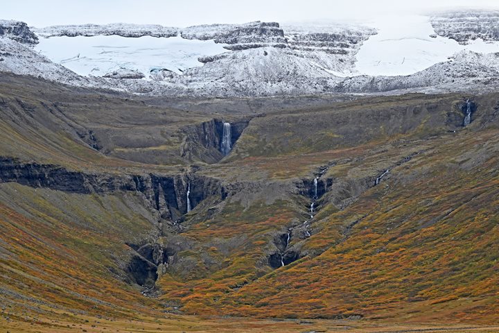 Part of the afternoon was spent with a concentrated effort to find some wildlife, and we passed more muskox and quite a few harbor seals. Alas, the narwhal we hoped to find didn’t appear. Just before teatime, a Zodiac tour was quickly launched to cruise the 2.5-mile-long face of Waltershausen Glacier, one of the widest tidewater glaciers in Greenland. A few large icebergs had recently calved from the glacier, and the late afternoon light provided some fine photographic opportunities.
