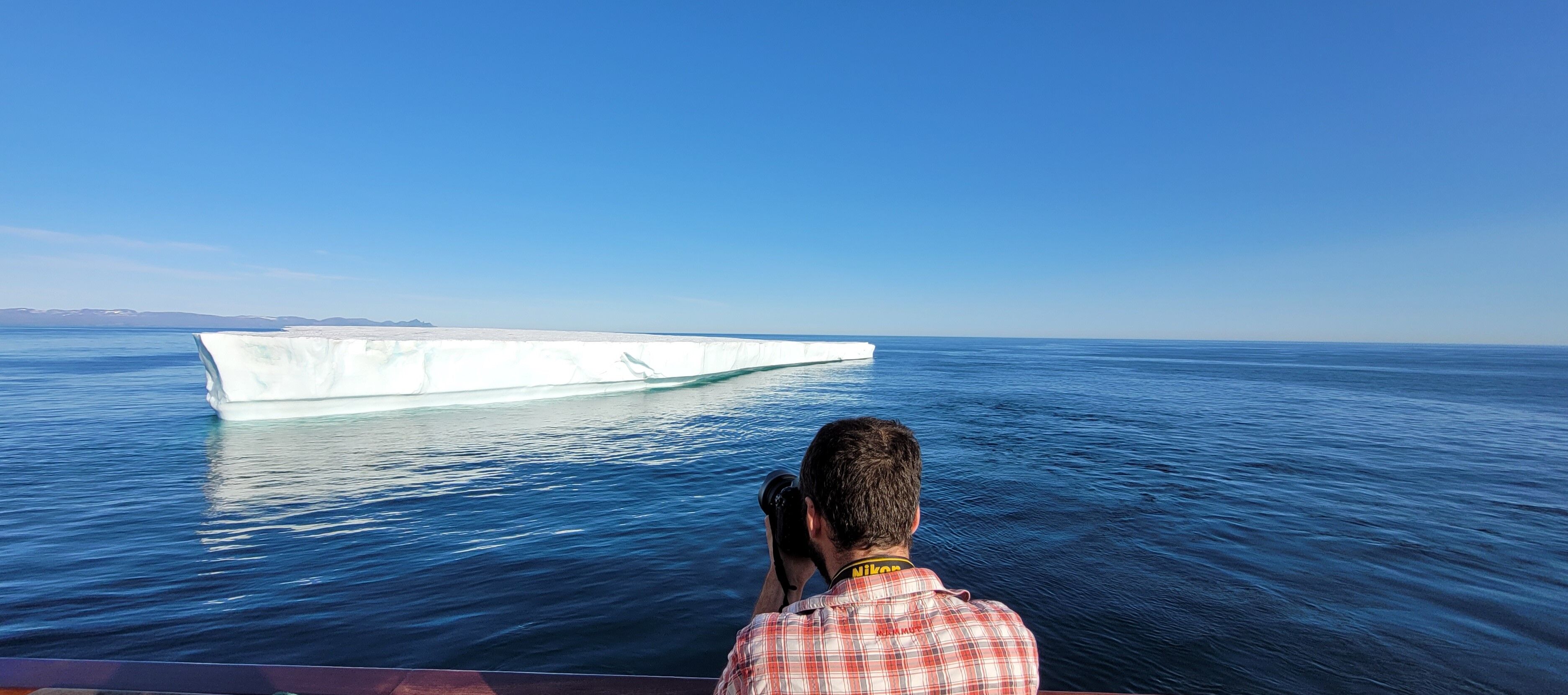 During the night the sun dropped behind the horizon for the first time as the ship was sailing southward towards the Cape York. This morning we witnessed magnificent scenery stretching in all directions, with hundreds, maybe even thousands, of close and distant icebergs filling the line of the horizon and the Greenland coastline.