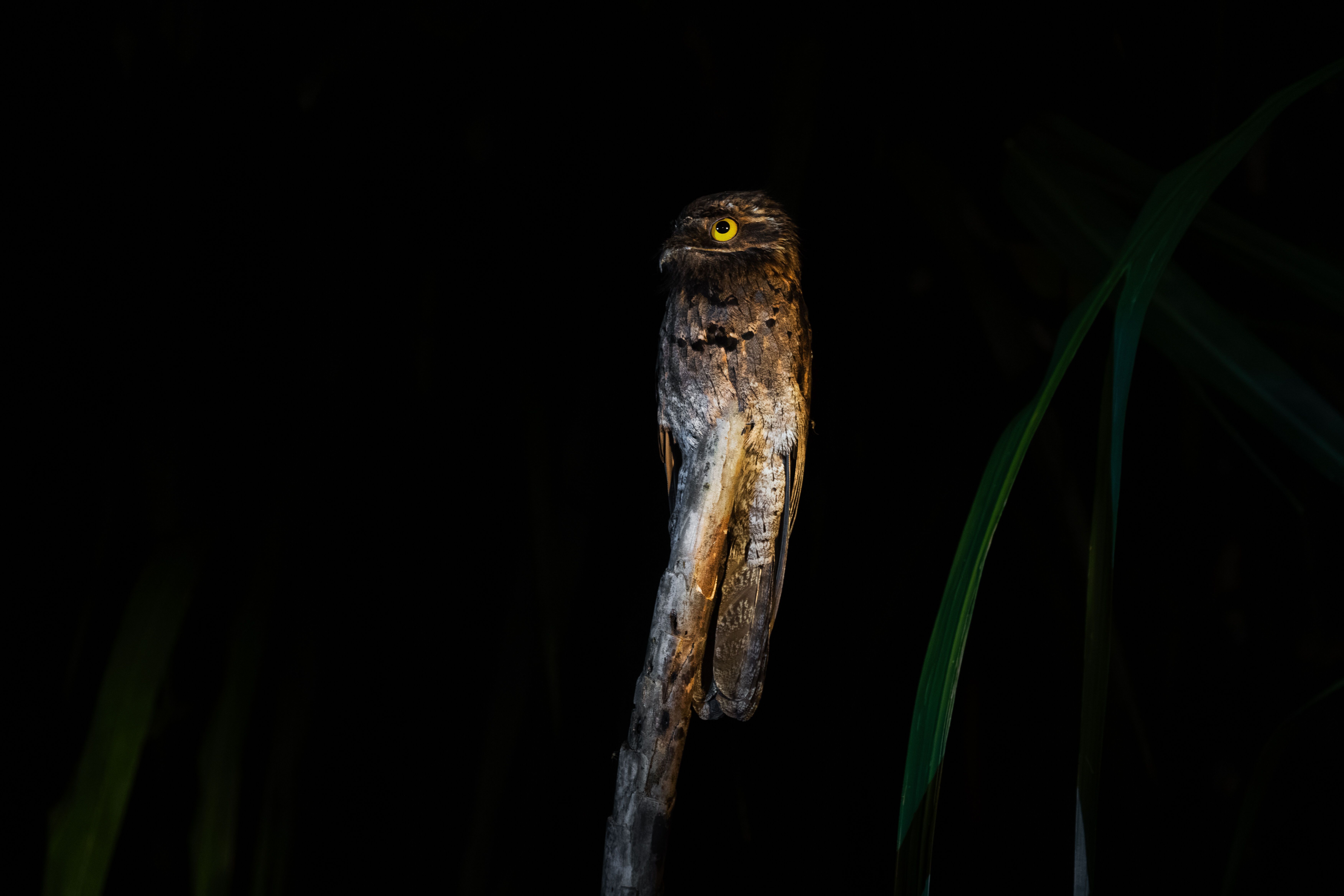 It was a quiet morning with plenty of sounds. A saddleback tamarin monkey peeked at us from the leafy shadows, and a green hermit hummingbird fed from the flower of a beautiful bromeliad. Perhaps the biggest surprise was the chance to watch a pair of tyrant flycatchers refurbishing the abandoned nests of the yellow-rumped cacique. Caciques create ornate hanging baskets with tiny openings. The much smaller tyrants (about the size of warblers) decided that these abandoned homes looked like the perfect place to set up shop and raise a family of their own. They proceeded to pluck bits and pieces from the outside of the nest to renovate the inside. We floated for a long time watching the dance as the pair worked fastidiously to make their new nest from another bird’s leftovers.