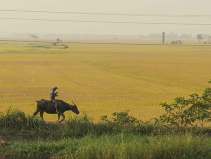 In the late afternoon we visited My An Hung, a small village along the banks of the river. We walked through a field of chili peppers and flowers (being grown for the upcoming holiday of Tet) before being invited into a home for tea and music. We also sampled a wide variety of fruit and corn while watching the local children and pet guinea pigs. After a short walk around the village the locals put on an incredible performance for us. Two boys dressed in a single dragon costume did an amazing job of moving, leaping, sniffing, scratching, standing, and walking to the accompaniment of a drum line. Next the speakers blared out American tunes and the singers among us tried their voices at karaoke. Things dissolved into a dance party with crew, guests, staff, and locals busting out the moves to American and Cambodian music. The local kids were delighted to have a handful of guests play soccer and volleyball with them and about a dozen children joined in the dance fray with their new foreign friends. The extravaganza ended with a bonfire and Vietnamese lanterns, heated by flame, being released to the heavens. Recap was followed by an excellent dinner and movie about Ho Chi Minh.