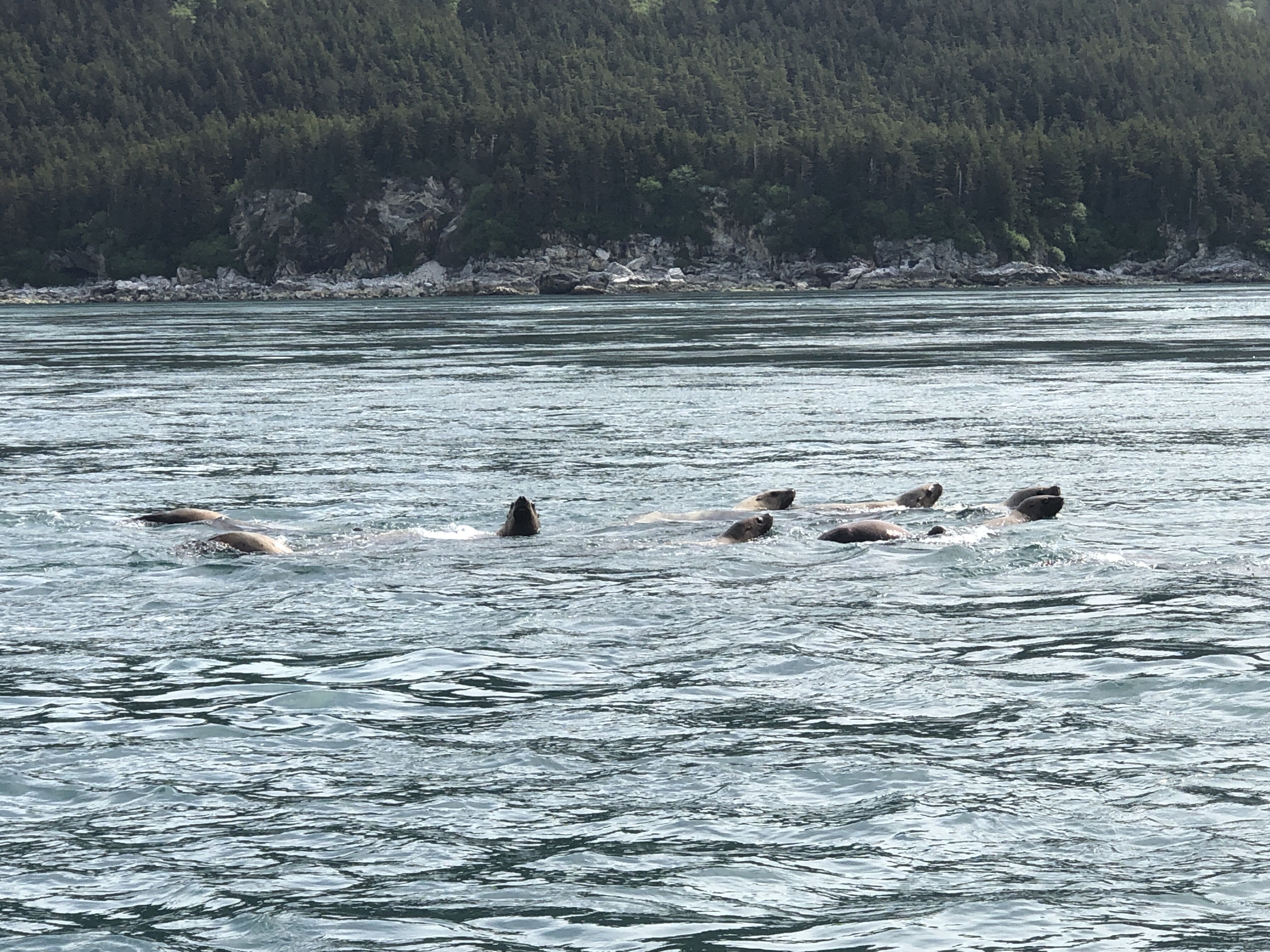 After lunch, as we exited Endicott Arm into Stephens Passage, our friendly shipboard geologist Al Trujillo gave a presentation entitled “Al’s Amazing Alaska Anthology” with a description of Southeast Alaska geology and glaciers. Later, we visited the small group of islands called Midway Islands, which were notable for an abundance of wildlife including northern sea lions, harbor seals, bald eagles, harlequin ducks, and even tufted puffins.