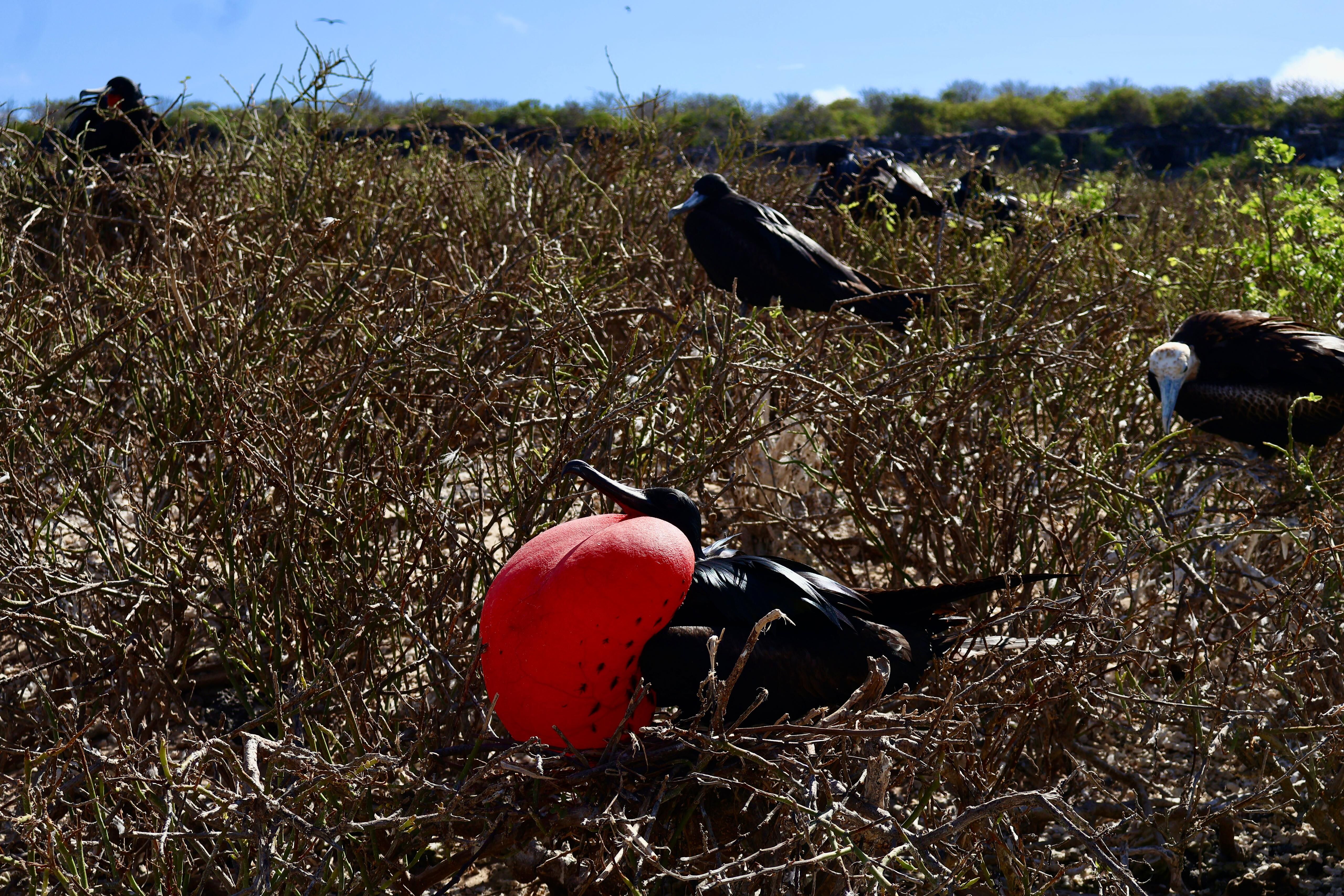 One of the morning’s most interesting sightings was a lava lizard catching a small Sally Lightfoot crab. After pulling three of the crab’s legs to eat, the lizard let the crab crawl away. We were also very excited to see some newborn Galápagos sea lions on the shore. These are the first pups of the season and they looked very healthy. Their mothers were not in the area but the babies were playing near the edge of the water and trying to climb onto the rocks.