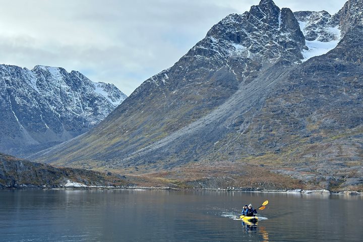 This morning the weather was clear and cold as the ship entered the short but beautiful Fram Fiord. The countryside was amazingly stark but there is still life here on Ellesmere Island, an island with the third most amount of glacial ice in the world after Antarctica and Greenland. Some 75,000sq.km of the island is covered in icecaps and glaciers. This morning there were two different offerings, Zodiac rides or walks ashore in search of the elusive muskox. The walking on the ancient granitic rock was challenging at times but worth it for the groups that were able to get close enough to see the shaggy guardians of the North fairly close. Making our way up the valley many of the walking groups could view the muskox as they selectively browsed the Arctic willow and other plants before fall and then quickly winter will set in.