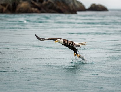 Our first stop was at South Marble Island, a site of breeding seabirds: tufted puffins, common murres, black oystercatchers, kittiwakes, and glaucous-winged gulls that once provided fresh eggs each spring for the Tlingit people. Numerous Steller's sea lions lounged in heaps on the rocks, uttering their belching roars.
