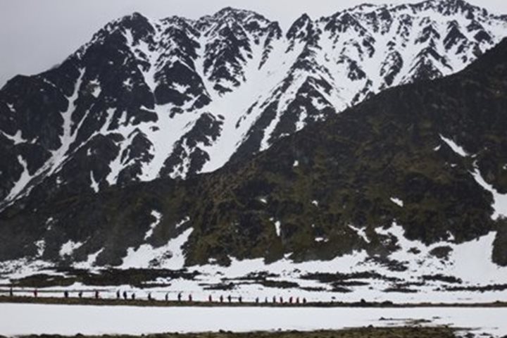 This morning the mother ship dropped the hook off Hamburgbukta along the northwest coast of Spitsbergen Island. A very small bay, barely visible from the sea, was entered via a narrow entrance to a natural harbor surrounded by a dramatic glaciated landscape. Setting off on our excursions of the morning we were impressed by the lush tundra and abundance of lichens as we made our way across the rolling rocky terrain of Albert I Land (named after Prince Albert of Monaco who contributed significant baseline information that is used today to compare climate and glaciers of a century ago). Not far from the landing we encountered the remnants of a hut once used by Norwegian trappers and the walrus bones nearby helped to paint the picture of an exploitive past. Further along the coast, grave sites of whalers were found and coffins buried in the active layer of frozen ground were surrounded by scurvy grass in bloom. Death by this vitamin C deficiency was the curse of early sailors and the irony of the plant that helped save the lives of many growing on the graves was truly cause for pause. In the distance Little Auks swarmed like bees off the cliffs and the long walkers made approach to the scree slopes of which they nest upon. After lunch Captain Oliver steered us into the beautiful Blomstrandhamna area in Kongsfjorden where polar plungers braved the Arctic waters. Being surrounded by glaciers from Isachsenfonna (the Isachensen ice field) enhanced the experience and cooled the waters for the brave, bold and slightly cold! After dinner we made a special visit to Ny Alesund, one of the world’s northernmost year-round communities. Once a coal-mining town now dedicated to scientific research, this little slice of humanity in an archipelago largely devoid of inhabitants is one of the most significant historical sites in Svalbard. This site has been the starting point of several historical attempts to reach the North Pole by names like Amundsen, Ellsworth and Nobile. In the middle of town we found a statue of Roald Amundsen and further up the road could see the mast to which he attached his airship “Norge” in 1926 before launching on his transpolar flight over the North Pole and the Arctic Ocean. This attempt was preceded by an unsuccessful attempt by Amundsen to fly to the pole the year before in two German Dornier Wal flying boats. In 1928 the airship “Italia” launched from this site with Nobile as pilot but the flight crashed, prompting the first international air-sea rescue, during which Amundsen’s rescue plane went down and he was killed. Walking around the area we had close encounters with reindeer, arctic terns, and sled dogs and saw some amazing aerial predation by skua and glaucous gulls. Leaving the dock of Ny Alesund we bid farewell to the Svalbard Archipelago and started making our crossing across the North Atlantic to Greenland.