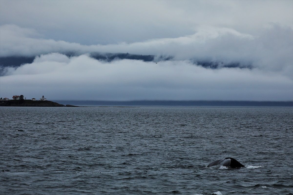 Southeast Alaska looked more like herself today with hanging clouds and fog in the distance. After days of blue skies we welcomed more atmospheric surroundings in Icy Strait this morning.