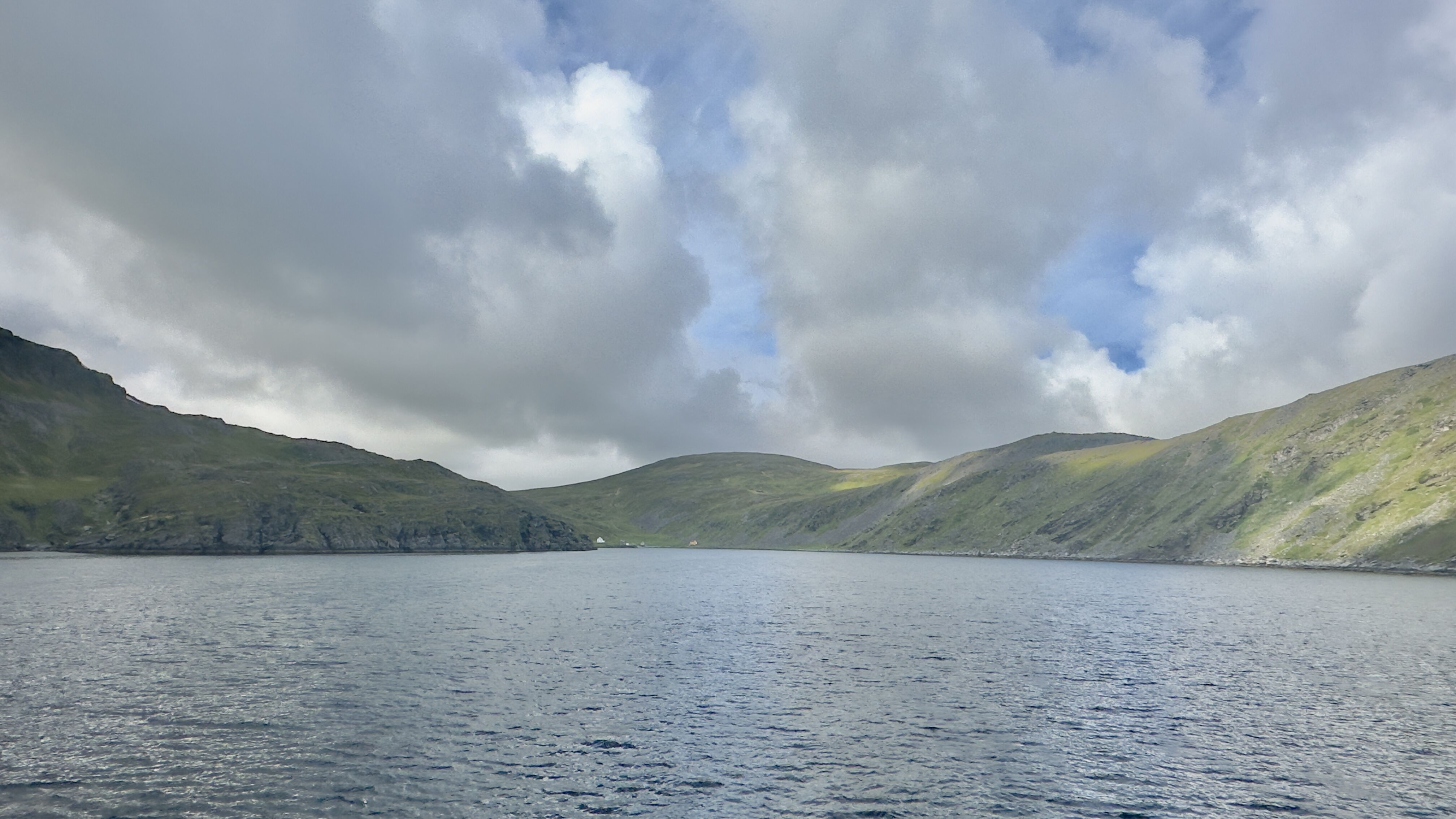 The morning greeted us with brilliant sunshine, albeit accompanied by fierce winds, as we approached Ingeborgfjellet, nestled at the entrance of Bellsund’s majestic fjord system. Despite eager anticipation, weather dictated a stay onboard. However, we were treated to an enlightening presentation by our onboard scientists, Rui and Rita, as they detailed their insights and methodology on global climate change research.