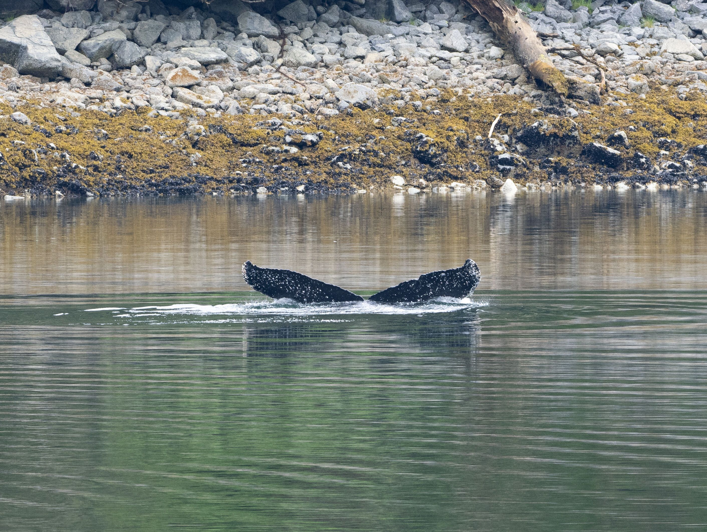 Eager to see what further beauty the Inians held, we departed in Zodiacs to greet this lively place. The bald eagles were too numerous to count. Looking up at the cloud-laced cliffs, there were some sections of forest where a bird perched atop nearly every tree. The sea itself held more treasures for us: Steller’s sea lions roaring at one another on the rocks, harbor seals periscoping amid the kelp, a raft of sea otters sheltered in a cove. The cetaceans were equally well represented, with harbor porpoises, humpback whales, and even a minke whale making an appearance.
