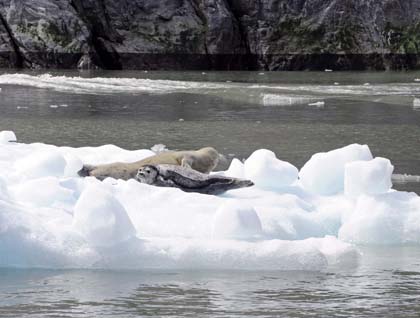 The Zodiac cruises took us all the way to the glacier front, where we could hear the glacier and see occasional bits break from the face while large flocks of kittiwakes fed at the meltwater outflow from the glacier. We had great luck and found a Sabine’s gull resting on a growler in front of the glacier – a great experience and photo opportunity. Some of the icebergs were the size of the ship, some even larger than the ship. That is an impressive sight, and not so common to see up here around Svalbard.