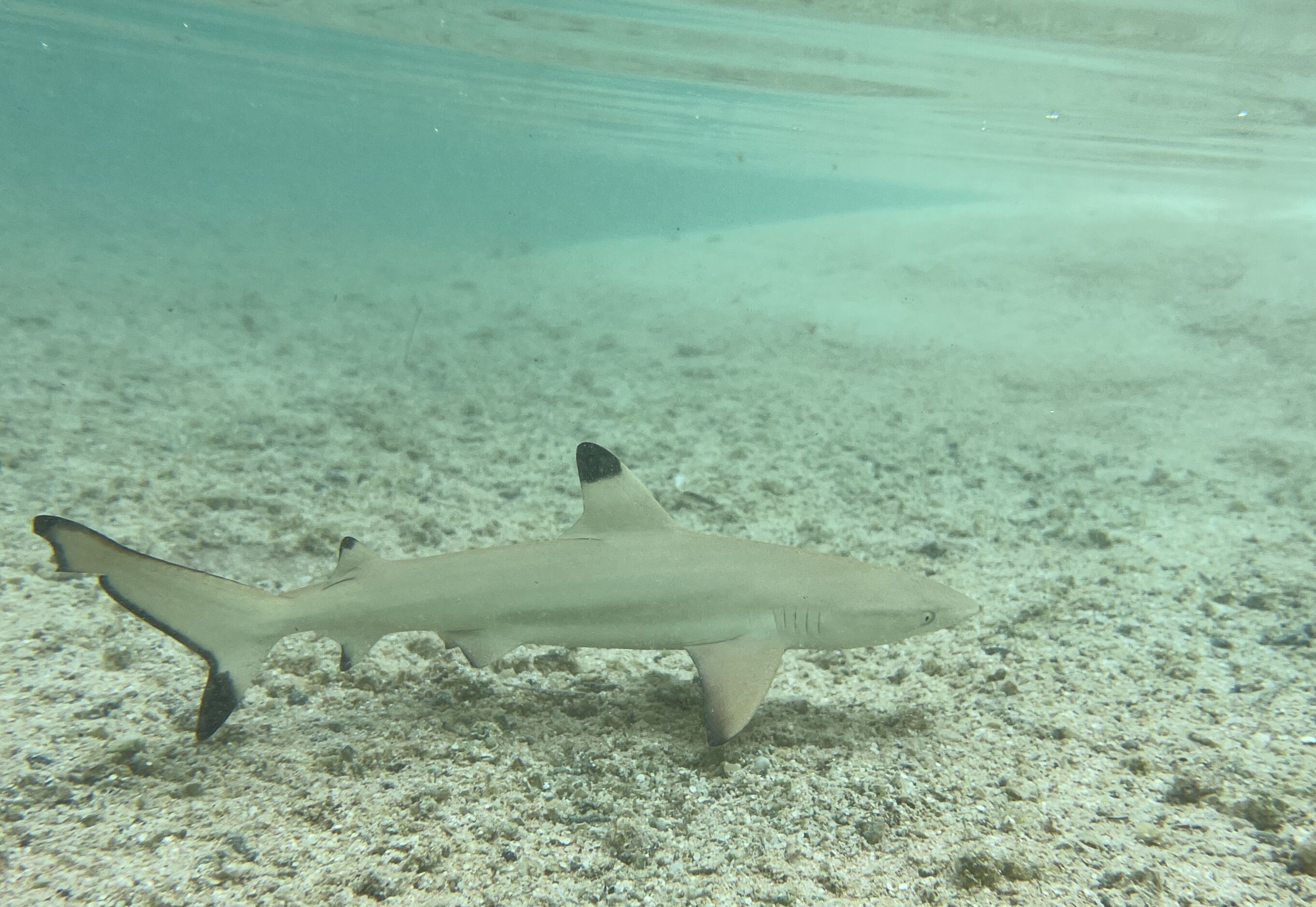 In the afternoon, two catamarans came to National Geographic Orion to take guests snorkeling with black tip reef sharks and Tahitian stingrays. The blacktips around Moorea keep reefs healthy by eating sick and injured fish and keeping these fish stocks genetically fit. The Tahitian stingrays gather in this region in particular because of the extensive sandy lagoons rich with the crustaceans that they feed on. As the catamarans navigated to a small motu where we spent the afternoon, guests were surrounded by green sea turtles feeding on a nearby seagrass meadow. Our final day in the Society Islands was certainly unforgettable.