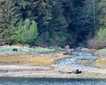 The day was beautiful, and the sun was shining. It was so calm that reflections of the mountains on the sea were exact replicas of the originals. A better day for kayaking would be hard to imagine. We stopped in the middle of the ocean, far away from the still visible but distant shoreline. Two activities were offered to guests–more kayaking or Zodiac cruising. Lots of small icebergs and brash ice were scattered around, requiring a lot of maneuvering for these small vessels. The water was so transparent that we could easily see the deep underwater bases of the icebergs.