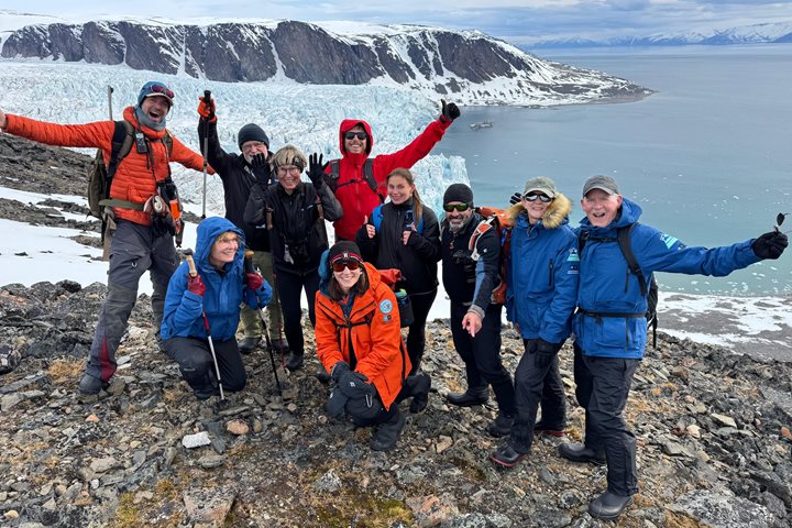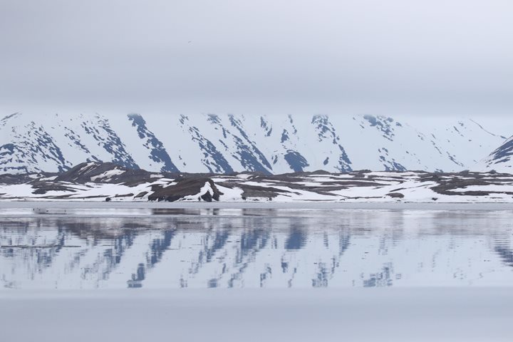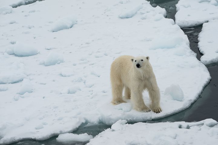 This morning, everyone still had vivid memories of last night’s sunny bear encounter. However, a new day started, and it promised new adventures. Before breakfast, our ship was positioned near Kapp Lee, where we planned a landing to stretch our legs for the first time on Svalbard soil. A scouting party went out and came back with a negative result. There was too much ice and deep snow on the landing. In expedition style, our plan quickly changed. The ship entered the spectacular channel of Freemansundet, located between Edgeoya and Barentsoya Islands. Soon after breakfast, naturalist Jackie Weston gave a presentation entitled “Introduction to Polar Bear Biology,” which helped us understand more about our observations last night.