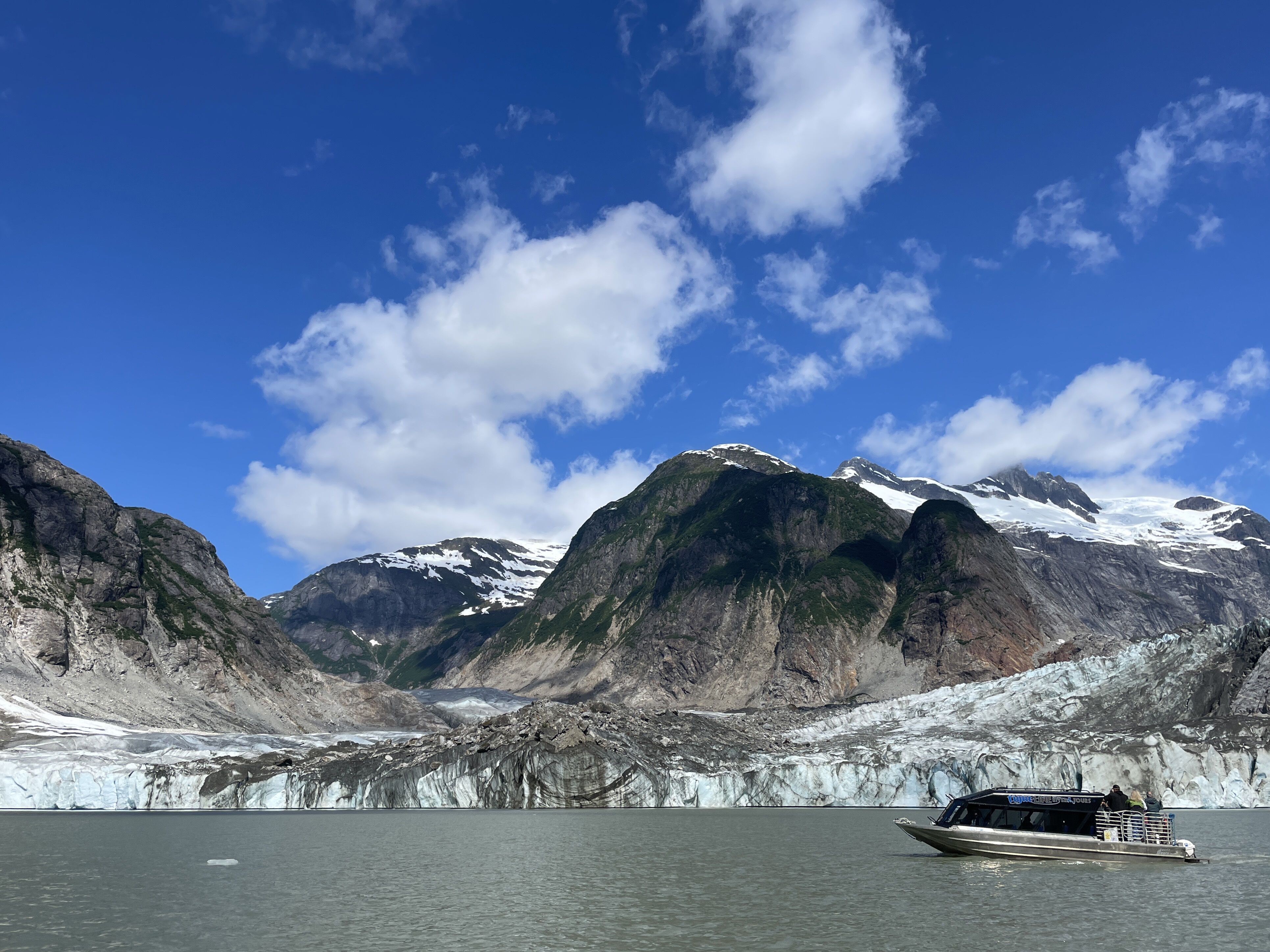 On the last full day of our voyage, we woke in Endicott Arm near the Dawes Glacier. We spent the morning enjoying Zodiac tours to the face of Dawes Glacier and watched multiple calving events. We were also able to spot several harbor seals, waterfalls, and a couple harbor porpoises on the way. After lunch we had the opportunity to participate in a polar plunge. Forty people decided to brave the frigid water for a short swim. Those of us not eager to jump into glacier water were able to watch from the bow. After the polar plunge, we warmed up on board as we started transiting towards Juneau. On the way, we stopped at a beautiful waterfall to once again admire the amazing natural beauty of Alaska. During our farewell recap, we were treated to a quick visit by a humpback whale. We ended our day with a slideshow made up of our favorite photos and memories of an amazing week on board National Geographic Quest .