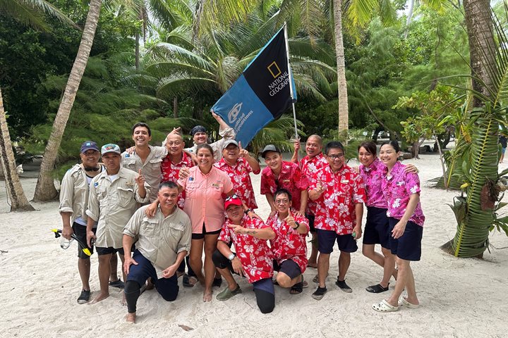 At first light this morning, National Geographic Orion utilized the tide window to pass through the narrow entrance into Rangiroa that is known as Tiputa Pass. The ship was escorted by an enthusiastic pod of bow-riding bottlenose dolphins.