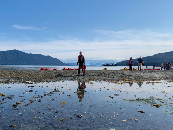 Under radiant blue skies and with the stunning backdrop of the Coast Mountains, guests aboard National Geographic Quest enjoyed a spectacular day in Petersburg, Alaska. Known as “the town that fish built,” Petersburg welcomed the ship with warmth and charm. Guests explored by Zodiac through the bustling marina, biked scenic roads around Mitkof Island, and joined local guides for immersive hikes highlighting native traditions and deep connections to the land and wildlife. A particularly intrepid group of 17 guests tackled the challenging seven-hour hike up (and then back down) Petersburg Mountain, rewarded with sweeping views and a sense of triumph. The day ended in true Alaskan style, with a lively crab feast on board. Crew members served up the local delicacy while proudly donning t-shirts featuring the whimsical marine art of Southeast Alaska’s own Ray Troll. It was a day of sunshine, sweat, stories, and seafood—an unforgettable chapter in their Inside Passage adventure.