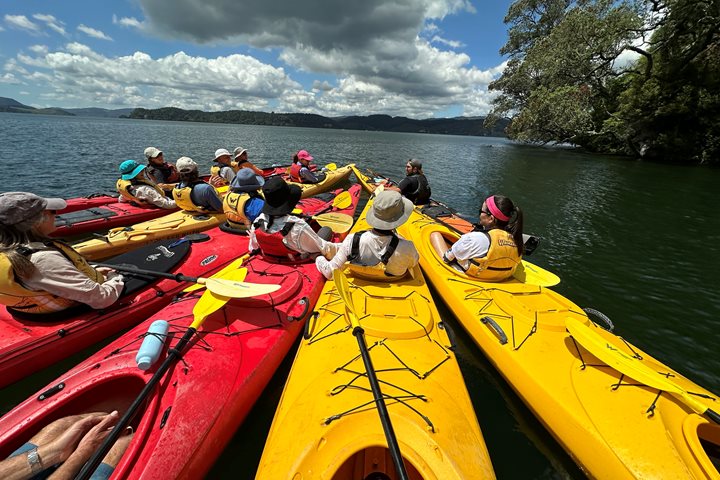 The sun was shining as we docked in Tauranga, and everyone was up early for our 0730 departure. Our guests had two options for the morning’s activities. The first was a kayak tour of Rotoiti Lake to visit the hot springs and make a quick visit to a small cave where we managed to see glowworms. (Fun fact: glow worms are actually maggots. The ‘glow’ is from their poop.) A bit of wind made for a decent workout on the way out, but it provided a helping hand on the way back.