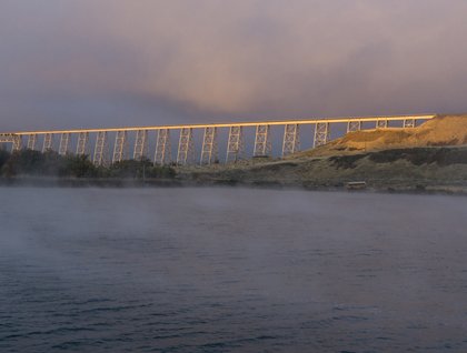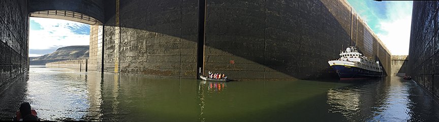 At 0600 hrs under starry skies the National Geographic Sea Bird locked through the John Day Dam. The John Day is the highest lift lock in the United States and here we dropped 110 feet to the level of the downstream water. The great guillotine gate rose and we sailed under it and continued down the mighty Columbia River. Before we reached The Dalles Dam two hours downriver we were treated to the sight of Mount Hood, a great stratovolcano of the Cascade Range rising high in the south. The morning sun struck the snow-covered mountain and it glowed pink in the morning light—alpenglow. At The Dalles Dam many of us were up and on the deck to watch the lock operation. We sailed on and were soon docked at The Dalles and ready for our morning adventures.