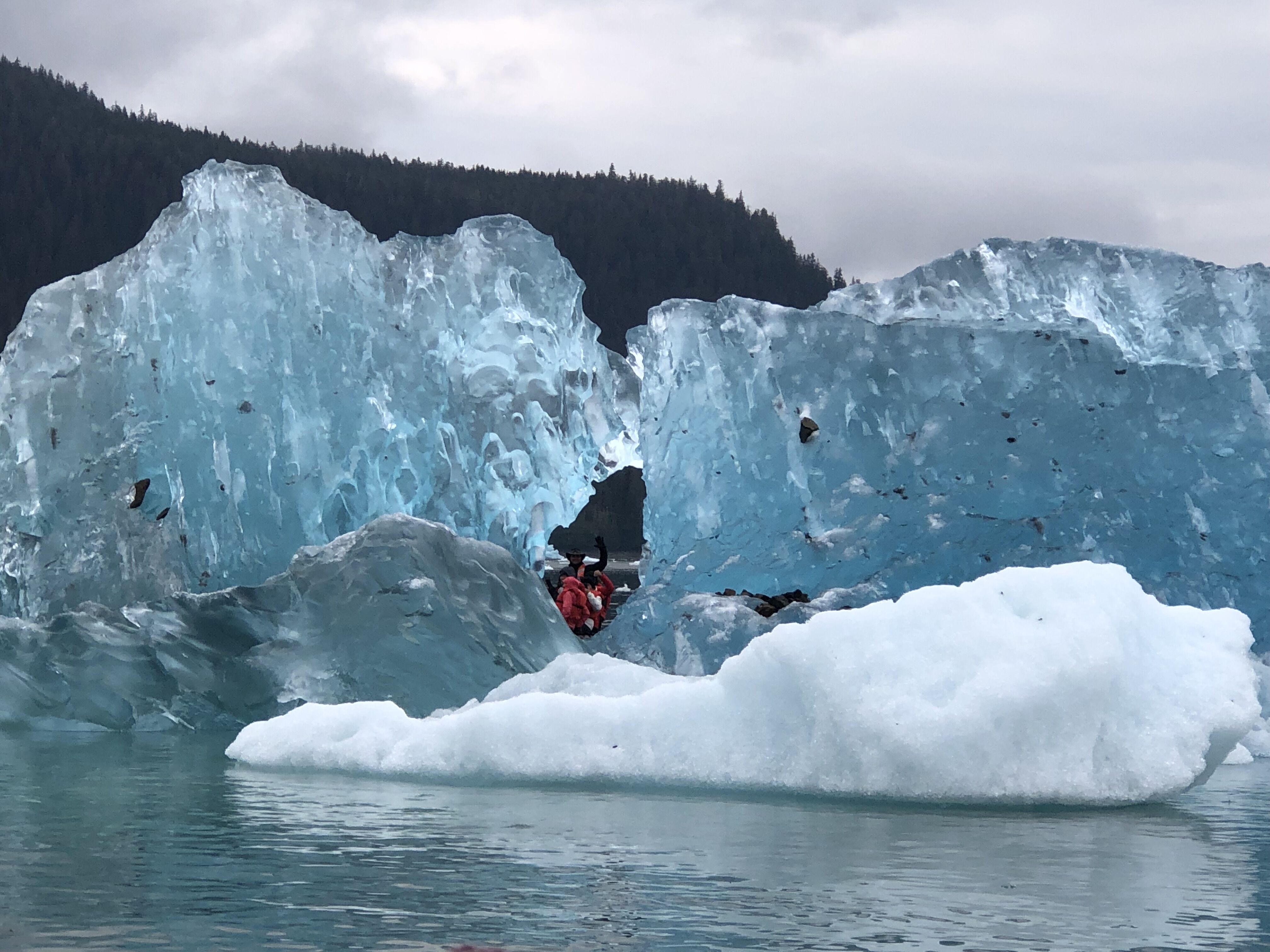 Today, we embarked on a voyage through the breathtaking Endicott Arm, a 30-mile fjord carved by ancient glaciers. As our vessel glided through the jade-green waters, towering granite cliffs rose on either side, with cascading waterfalls fed by melting snowfields. The fjord's serene beauty was punctuated by the occasional splash of harbor seals diving from ice bergs and the distant sight of mountain goats navigating the rugged terrain. Approaching the terminus of the fjord, the awe-inspiring Dawes Glacier came into view. Standing over 500 feet tall and half a mile wide, its icy facade shimmered in hues of blue and white. We boarded Zodiacs to get a closer look, maneuvering through a maze of icebergs, each uniquely sculpted by nature. Suddenly, a thunderous crack echoed as a massive chunk of ice calved from the glacier, crashing into the water below and sending ripples across the fjord—a humbling reminder of nature's power. The journey through Endicott Arm was more than a scenic cruise, it was an intimate encounter with the raw, dynamic forces that shape Alaska's wilderness. The memories of shimmering glaciers, playful seals, and towering cliffs will linger, a testament to the allure of this pristine frontier.