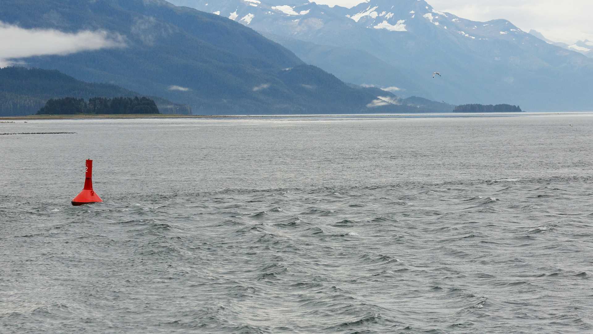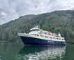The day dawned with strong winds and choppy seas, persistent rain, damp cold, and was ‘colored’ by two shades of gray…no blacks or whites. But after we crossed the ‘Bar’ of Tracy Arm Fjord (the underwater remnants of the terminal moraine), the wind lessened, the seas became flat, the rain stopped, the cold was ‘warm,’ and there were more shades of gray with a hint of green. We passed several textbook examples of hanging glaciers interspersed among towering cliffs and rock faces resembling abstract paintings. The Chief Mate positioned us within feet of the Hole-in-Wall and Icy waterfalls. The volume of cascading water was most impressive and inspired several hundred photographs. As we continued up the fjord, ice from the South Sawyer Glacier drifted by, increasing in size and number as we drew closer and closer.