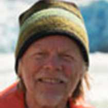 After lunch, we departed for Zodiac cruising among the brash ice, growlers, bergy bits, and small icebergs to view the glacier from a safe distance. The rugged glacier face had veins of blue interspersed with patches and columns of white. The scene was enhanced by cloudy conditions that eliminated harsh shadows. We were honored and awed by several calving events, hearing the low ‘boom’ seconds after the ice crashed, watching the explosion of water, and experiencing a gentle rocking as the swells rolled under our Zodiacs several minutes later. One of the guests estimated the size of the largest calved ice, then extrapolated a weight of 8,000 tons! Many harbor seals rested on icebergs very close to the glacier face and calving ice but were quite blasé about the watery turmoil near their icy ‘bed.’ While those seals slept, several juvenile seals actively swam around and occasionally poked their heads out of the water to investigate this strange sight of orange things crowded together on a small gray ‘iceberg.’